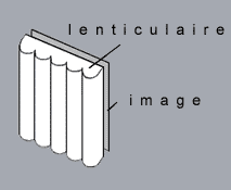 | L'image finale en relief est l'assemblage de l'image codée et du lenticulaire. Suivant l'effet recherché, le format et le tirage, il existe une grande variété de lenticulaires adaptés. Pour simplifier, les grands formats (jusqu'à 120x240 cm environ) en petites séries sont réalisés par collage des images opaques ou transparentes (duratrans) derrière les lentilles, et les petits formats en grandes séries par impression offset (jusqu'à 50x60 cm environ) derrière les lentilles. |
